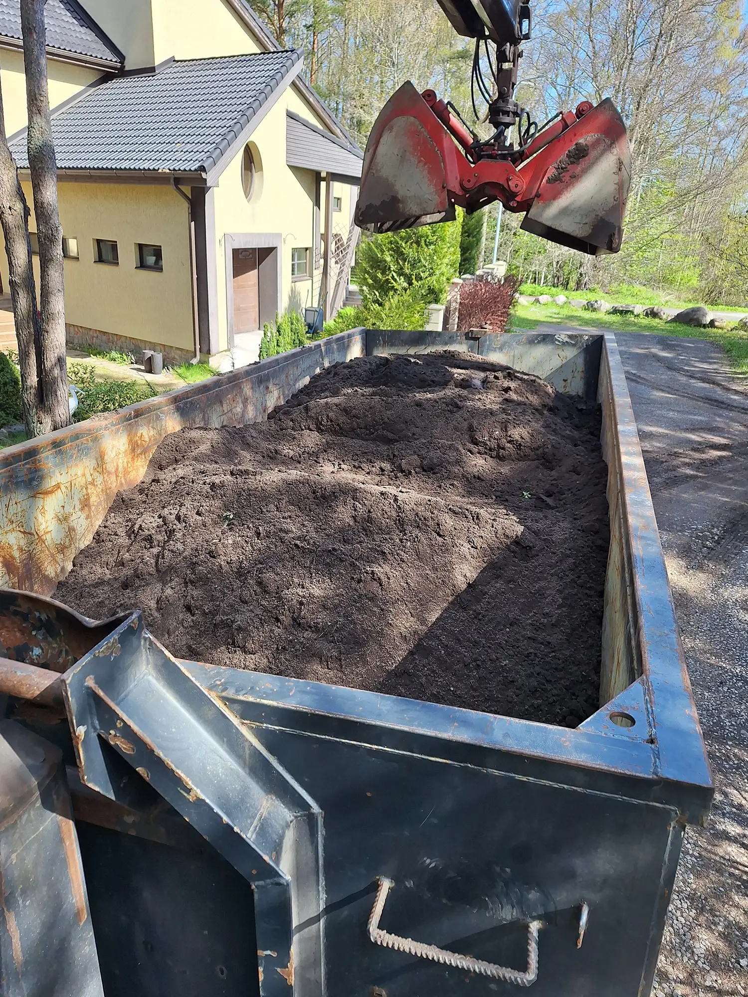 Kiire ja iseseisev prügi, okste ja puistematerjali laadimine.